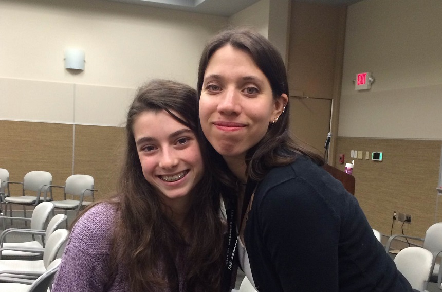 Julia Paoli (left) uses a science blog to share the science behind viruses with a wide audience. Here she poses with the author (right) at the 2014 Science Online Together conference.