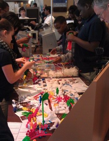 Students flooded in to the Q?rius exhibit to build their own micro-creature.