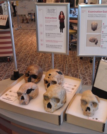 At another station, you can check out skulls of different human ancestors — then use what you learn to try and identify a mystery skull. State-of-the-art microscopes at yet another station allow visitors to view all sides of an object, displaying those magnified details on a computer screen. The system allows you to zoom in and out of whatever you’re scanning. I was able to see all sides of a tiny bee, all the way down to the hairs on its legs.