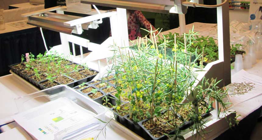Fast Plants on display at Family Science Days. These plants exhibit the different effects of dominant and recessive genes.