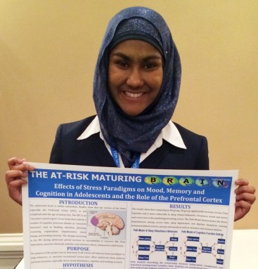 Zarin Rahman, 17, became interested in sleep and cell phone use through personal experience. “If I’d been using my phone too much the night before,” she says “I had a hard time focusing in class. I knew there was some kind of connection, there was something that I was doing that was wrong and it was affecting me negatively.” The senior at Brookings High School in Brookings, South Dakota, decided to figure out where she was going wrong, and she began to study the connection between use of electronics and sleep.