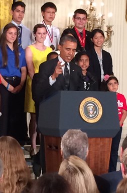 “Last week, we had the Superbowl champions, the Seattle Seahawks, here,” the President noted. “They came by the White House and that was cool…But I believe that what’s being done by these amazing young people I’ve had a chance to meet is even more important.”