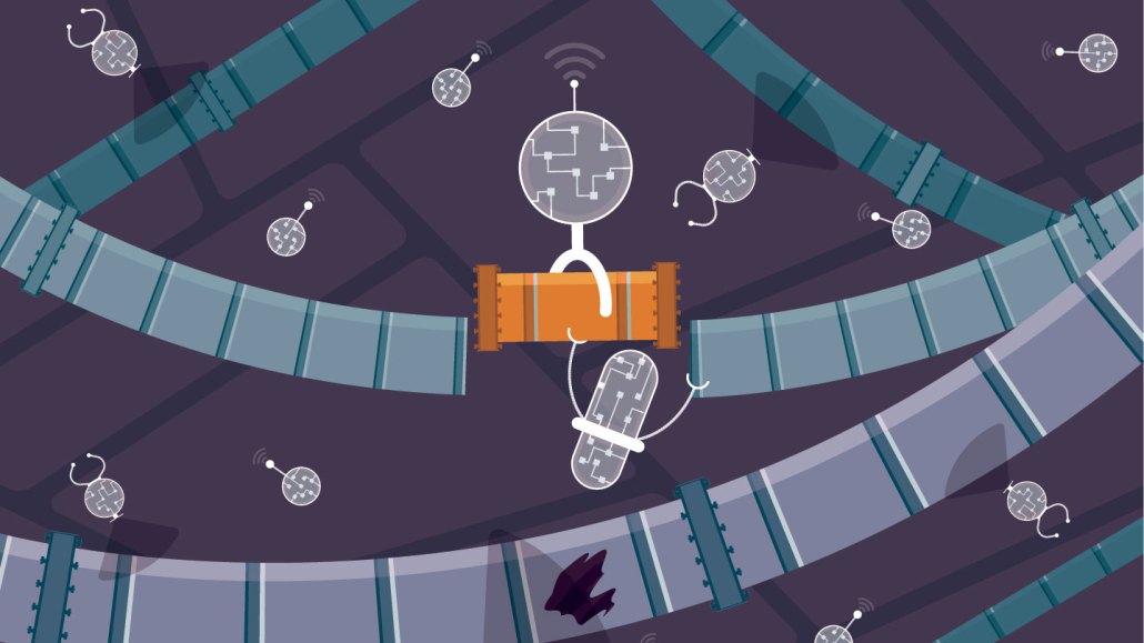 Here’s an artist’s concept of what a nano-robot might look like as it attempts to repair damaged proteins in a cell. Tiny machines such as these may one day repair broken cell machinery.