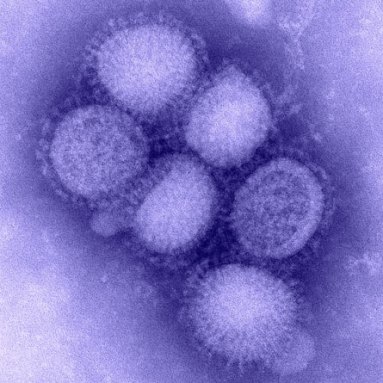 The H1N1 flu virus, shown here, has been called swine flu because scientists suspect it started out in pigs. Despite its name, the H1N1 flu can’t be caught by eating pork products or being near pigs.