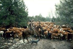 Driving a herd of cattle near Paisley, Ore.