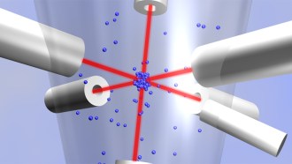 Light can bump an atom. Bump it from several different directions at once and even a fast-moving atom will instantly freeze its motion — and chill it to a temperature of nearly absolute zero.